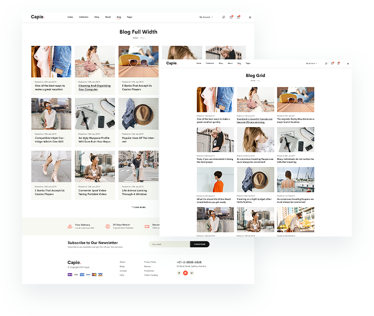 Capie provide 2 main blog layouts and you can also customize yours easily.
